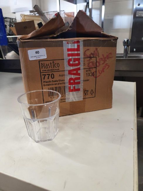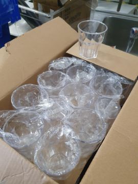 * boxed 9ox plastic soda glasses