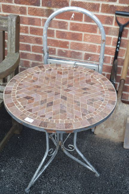 Circular Metal Framed Mosaic Garden Table, and a Set of Two Tread Steps