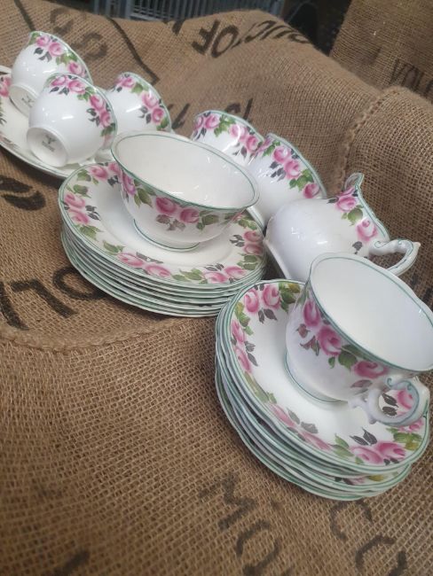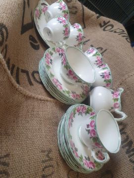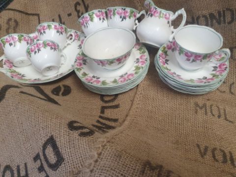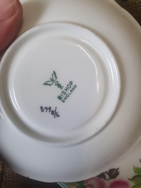 * Bishop England tea set - cups/saucers/small plates/sugar bowl/milk jug