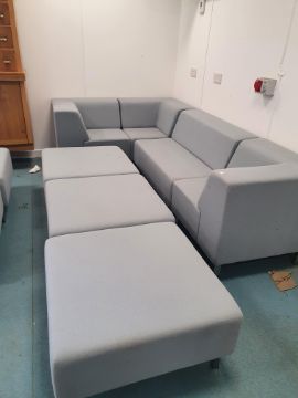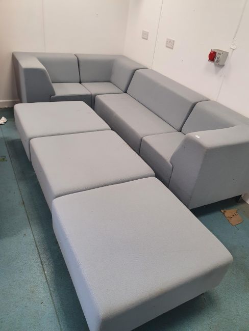 * Grey fabric sectional sofa - with 3 stools