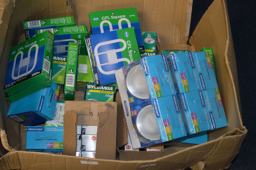 *Box of Assorted Lightbulbs Including CFL Square, Par 30H Reflector Lights, etc.