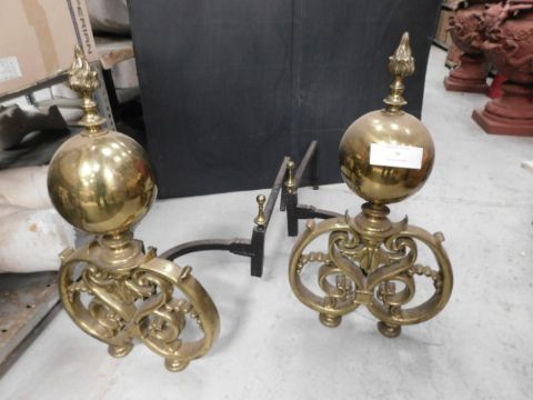 * Pair Brass Pinnacled Globe firegrate Stands
