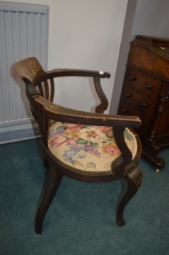 Inlaid Mahogany Salon Chair with Floral Upholstery and Cabriole Legs