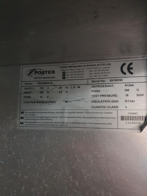 * Foster upright fridge ProG600H-A