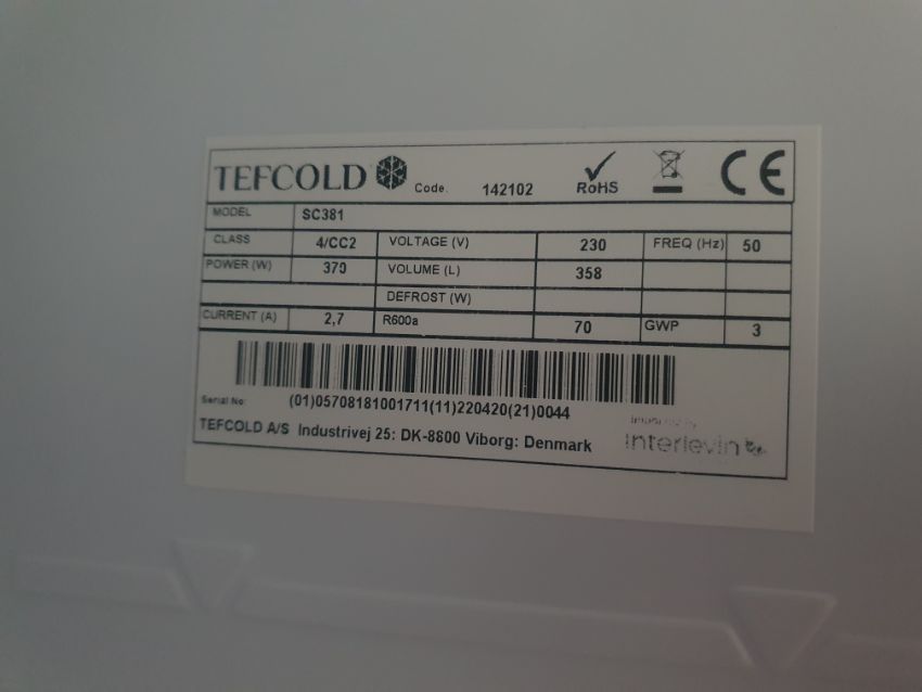 * Tefcold SC381 upright cooler with glass door - with manual
