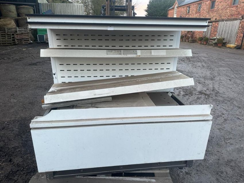 * 7 x low-level refrigerated, grab and go display units in stainless steel and white corian. Removed from a sushi restaurant takeaway , makes up into a seven piece run. Varying condition , not very old require cleaning and tidying up - 1300w x 950d x 1300h each
