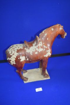 Chinese Pottery Horse on Stand 34cm tall (some damage to glaze and tail)