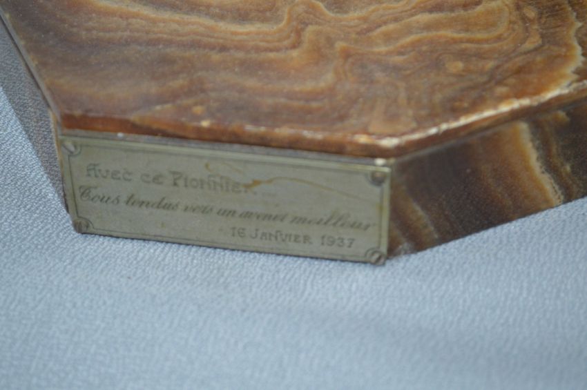 French Art Deco Hunter Sculpture by Jean De Roncourt circa 1925 in Patinated Spelter on Marble Base