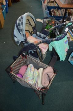 Child's Pushchair, Dolls, Cot & Bedding etc.