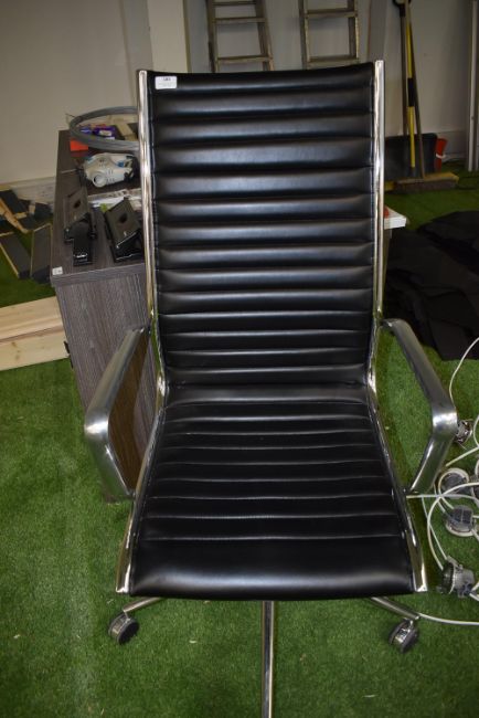 *Contemporary Style Office Chair on Chrome Base with Stitched Faux Leather Seat and Back