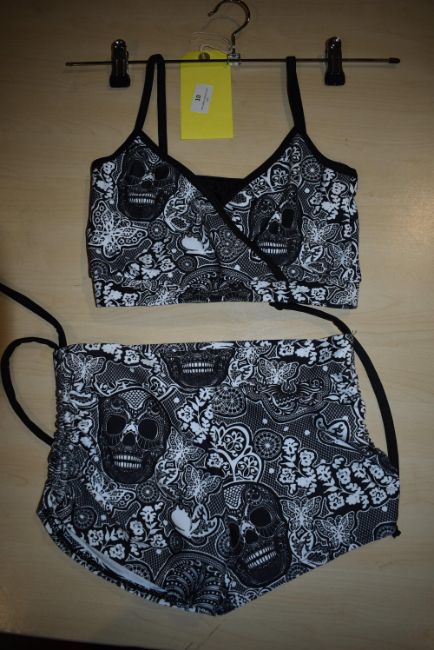 *Black & White Skull Pattern Yoga Shorts and Top Size: S