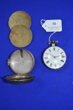 Silver Pair Case Pocket Watch with Fusee Movement by William Ash of Barnsley - Hallmarked Birmingham 1835 (working condition, some faults to enamel face)