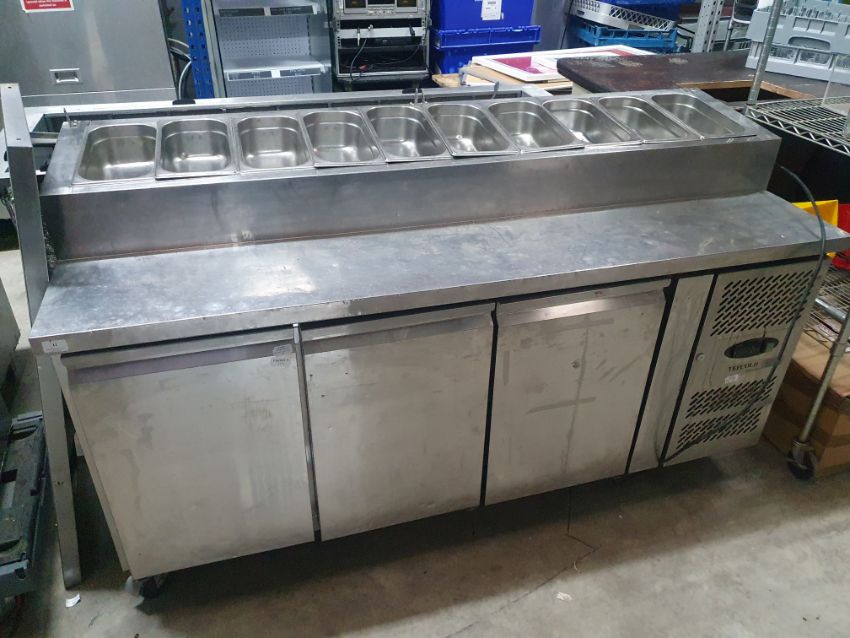 * Tefcold 3 door pizza prep fridge with gastros