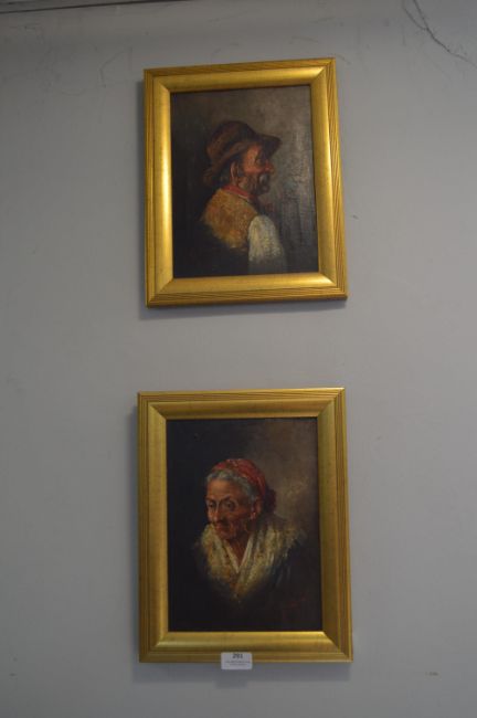 Pair of Continental Oil on Canvas Romani Portraits (indistinct signature)