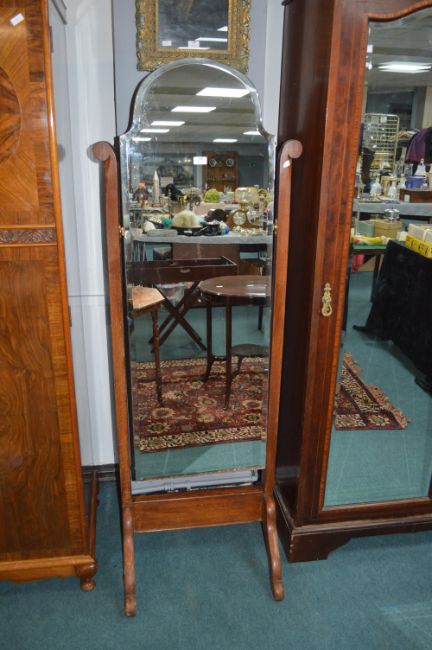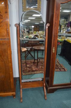 1930's Oak Framed Beveled Edge Cheval Mirror