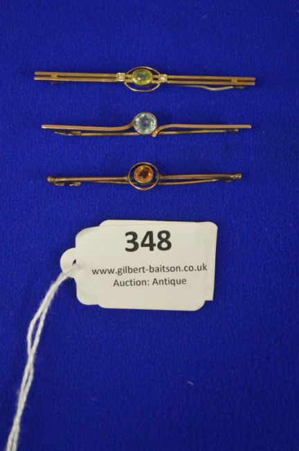 Three 9k Gold Bar Brooches with Gemstones ~6.63g gross