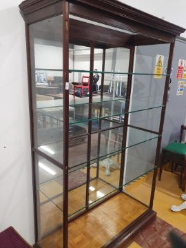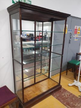 * Edwardian antique shop display unit - with mirrored back panel and glass sides and shelves. 1200w x 450d x 2000h