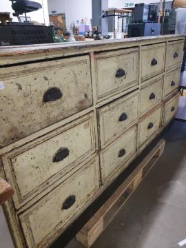 *Superb 12 Drawer Pine Unit in Original Condition with Original Paint 1940w x 630d x 910h