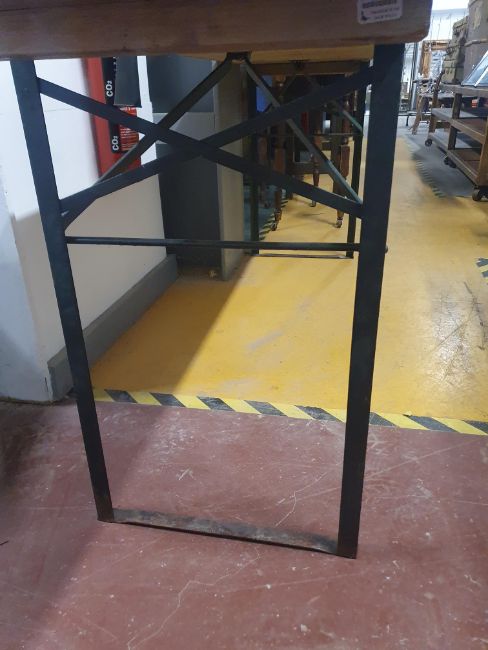 * folding bench - wooden top and heavy metal base. 2200w x 500d x 780h
