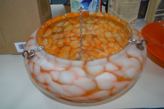 1970's Orange Glass Bowl, Deco Mottled Orange & White Glass Ceiling Light & Fittings