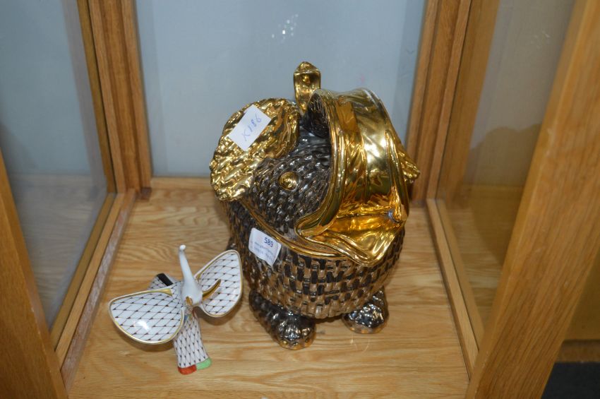 Two Elephant Ornaments Including One by Hollohaza of Hungary