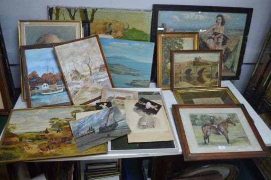 Assorted Framed Original Oils, Watercolours, Sketches, etc.