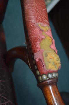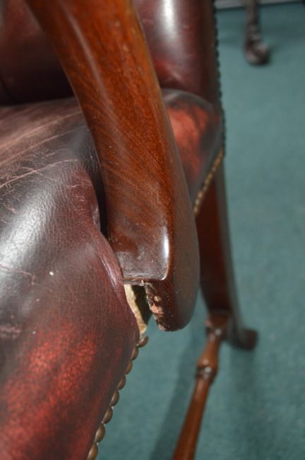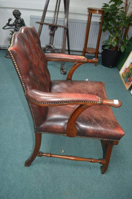 Chesterfield Red Leather Armchair with Mahogany Frame