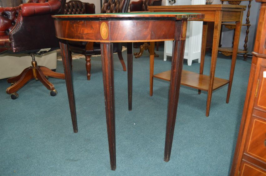 Regency Halfmoon Card Table in Mahogany & Walnut with Inlaid Shell Cartouches