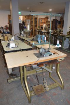 26 Industrial Singer, Pfaff, Brother and Other Sewing Machines, Over Lockers, Reece Button Holer, Seamer, Button Press, Stock of Haberdashery, Buttons, Thread, Zips, Tweed, Blazer and Other Cloth, Mannequins, Clothes Rails, etc.