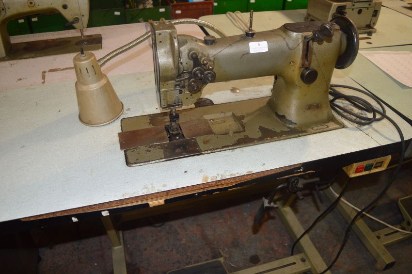 Electric Double Needle Sewing Machine on Table with Motor (condition unknown)