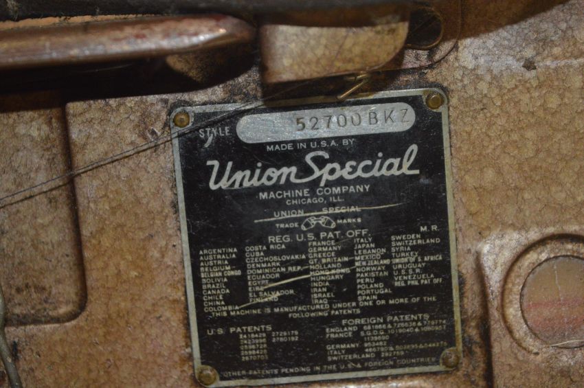 Union Special Double Needle Sewing Machine on Table with Electric Motor