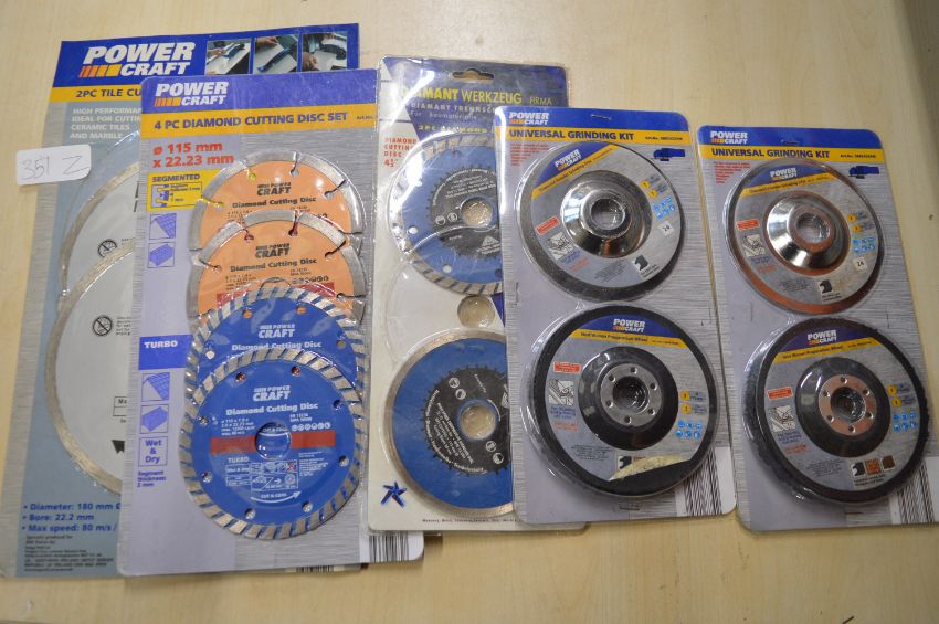 Two Packs of Universal Grinding Kits, One 2pc Diamond Cutting Discs Set, One 2pc, and a 2pc Tile Cutter Blade Set