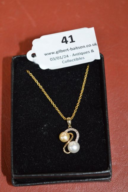 9ct Gold & Pearl Pendant and Chain ~3.5g