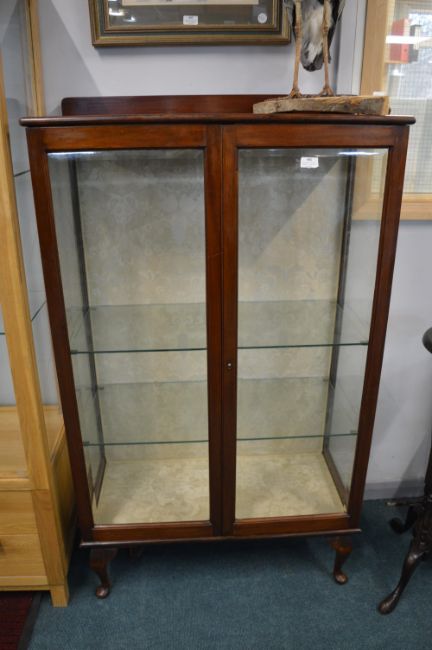 Edwardian Mahogany Framed China Cabinet with Beveled Edge Glazing