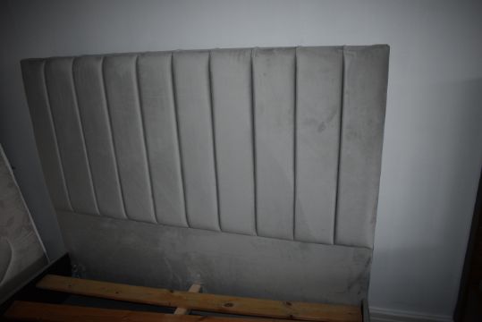 *King Size Bed in Silver Grey Suede Effect Velour with Head and Foot Board