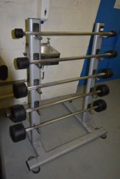 Set of Five Curling Weight Bars (Various Weights) and Stand