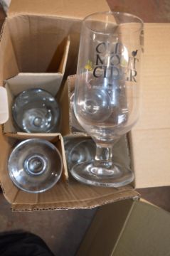 ~24 Unbranded Pint Glasses, ~12 Half Pint, and 5 Old Mont Cider Glasses