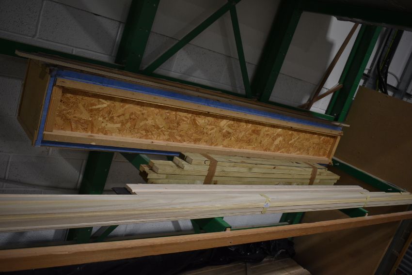 *Contents of Shelf to Include Tanalised Wood, Offcuts, Corner Moulds, and a Wooden Stillage 14”x14” x 2.5m long