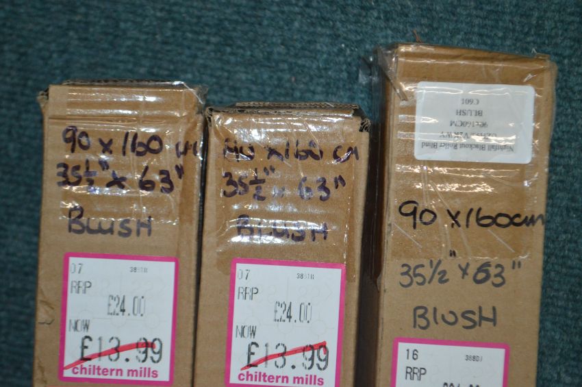 *Three Blackout Roller Blinds in Blush 90x60cm