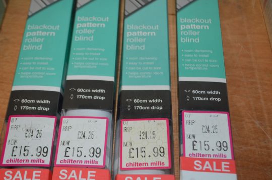 *Four Universal Stripped Blackout Roller Blinds 60cm x 170cm drop