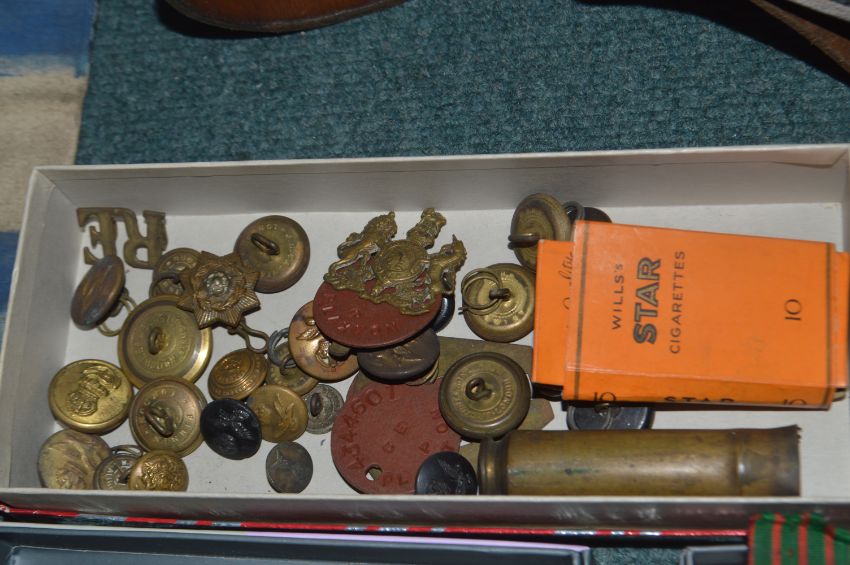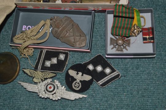 Military Medals, Badges, Kit Bags, and Assorted Items Including a German Belt