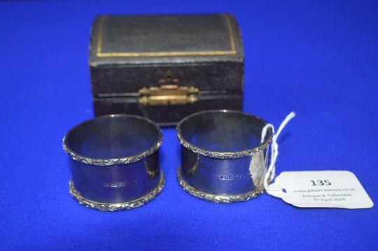Cased Pair of Hallmarked Silver Napkin Rings - Chester 1900, Retailed by Barnaby & Rust of Hull, 57g gross
