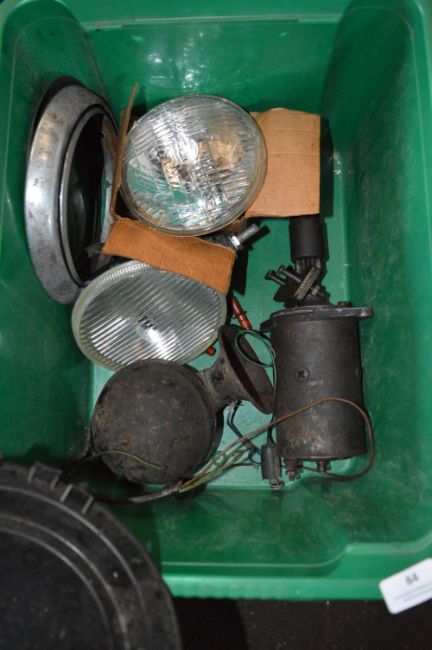 Box of Early Lights, Horn, Starter Motor, etc. for Older Vehicles