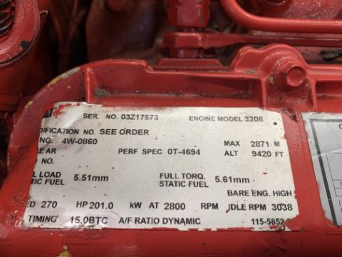Caterpillar 3208T Marine V8 Turbo, 270Hp @2800rpm Diesel engine Pump SPP Type TD20E 10x8 Flow 2000us gal/min head 125psig 2800Rpm imp 11.81" 367Hours