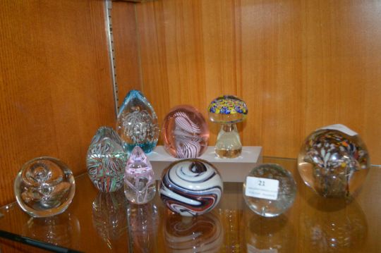Nine Glass Paperweights Including Wedgwood