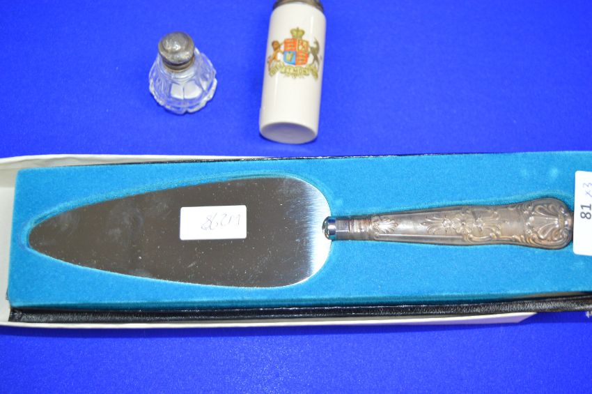 Hallmarked Sterling Silver Handle Cake Slice, plus Hallmarked Silver Topped Scent Bottle and Canister