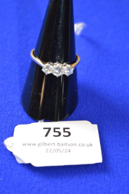 18ct Gold Ring with Three Diamonds Size: V ~3.1g