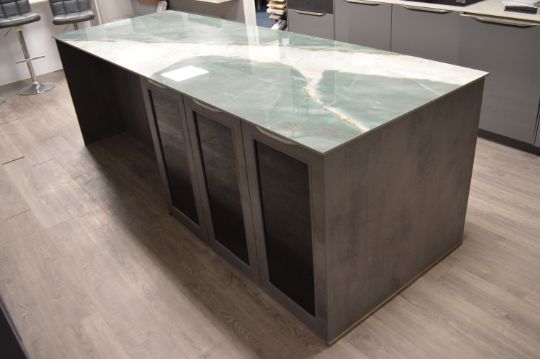 *Centre Island in Grey with Green & Grey Marble Effect Worktop 99x284cm x 90cm tall