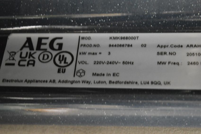 *AEG Integrated Combination Oven Model: KMK968000T (as fitted in lot 1)