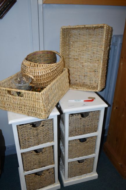 Two Small Three Drawer Basket Storage Units plus Assorted Baskets